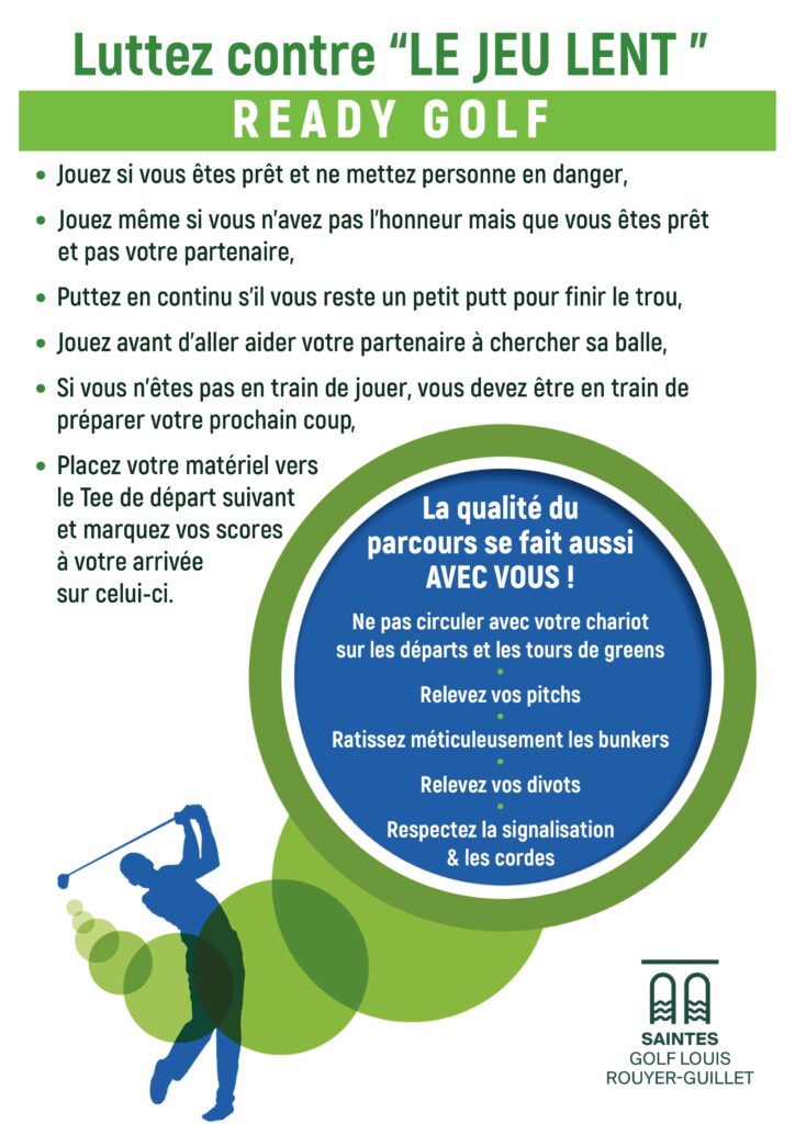 Afin d’améliorer les conditions de jeu et de préserver la qualité du terrain, notamment autour des greens et sur les départs, vous êtes désormais tous invités à respecter notre charte.